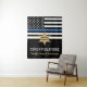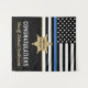 This design features a police force flag with black and white stripes, and a thin blue line stripe as well. Customize with the name of the retiring or graduating law enforcement officer, sheriff, captain, or chief. A great way to say congratulations to the new retiree or graduate for their retirement or graduation from police academy.