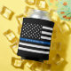 Show your support with this black and white police thin blue line American flag can cooler. Personalize by replacing the sample name with your own officer's name for a one of a kind gift.