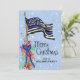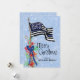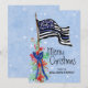 For police officers and their families this artistic holiday card features a thin blue line American flag with stars and stripes decorated with holly and red berries. The front of the card reads "Merry Christmas" with your name to personalize. The back of the card has a matching background of blue with snowflakes. Designed by world renowned artist ©Tim Coffey.