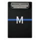 This police thin blue line clipboard has a horizontal blue stripe with a monogram initial on the front in white for you to personalize.