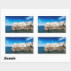 Rectangular photo sticker with houses built on a cliff in the Mediterranean Sea in the beach town Polignano a Mare on the eastern coast of Puglia in the south of Italy on a beautiful summer day.