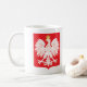 This design features the Polish white eagle on a red shield, the coat of arms of Poland. In Poland, the coat of arms is usually called White Eagle or Orzel Bialy. Great for that proud Polish patriot.