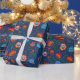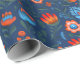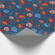 Polish Folk Flowers Wycinanki Blue Wrapping Paper