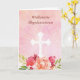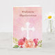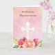 This faith-inspired Easter greeting showcases soft pink watercolor flowers and a radiant white cross set against a peaceful pastel background. The message is written in Polish, expressing heartfelt Easter blessings and celebrating the joy of the Resurrection.