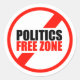 Politics free zone sticker designed to be placed wherever you want people to avoid talking politics.