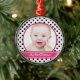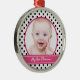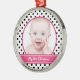 The text and photo on this Baby's First Christmas ornament are easy to customize. The black and white polka dot and pink frame makes this a pretty and stylish Baby's First Christmas ornament. These ornaments can be engraved on the back when you receive them! To change the text and photo use the personalize options. For more extensive changes to the ornament, including changing the font, font size, font colour, text placement, picture size and/or picture placement, use the customize it option.
