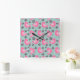 Polka Dot Birds and Flowers Square Wall Clock