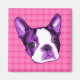Dress up your fridge with a purple Boston Terrier puppy head on a pink polka dot background!