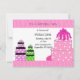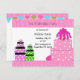 A bold pink polka dot cake and stacked polka dot presents accent this invitation. Borders of pink patterns on either end. Customize with your party information as desired.