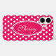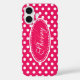 Modern girls bright red pink polka dot patterned graphic case. Perfect for personalizing your iphone or as a special Christmas or birthday gift for a woman or teen girl. Personalize with your choice of name and initial. This example reads: Sherry H. Design by Sarah Trett. www.sarahtrett.com for www.mylittleeden.com on zazzle.