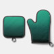 Polka dot gradient green black colours dark print oven mitt & pot holder set