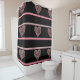 Cute heart shower curtains for girls. These pretty shower curtains feature a pattern of a cool polka dot heart design, pink stripes and a black background.