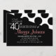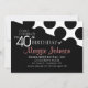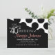 This stylish over the hill celebration party invite features black and white colours with pink text and polka dots dotted in a diagonal patterned background. It is simple and elegant for a classy fortieth birthday event for a mature woman.