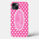 Modern girls bright soft pink polka dot patterned graphic case. Perfect for personalizing your ipad or as a special Christmas or birthday gift for a woman or teen girl. Personalise with your name and initial. This example reads: Reagen G. Design by Sarah Trett.