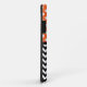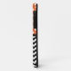 Stylish iPhone 5 Casemate Barely There Case designed with white polka dots over orange on the top, a black & white chevron zigzag pattern on the bottom, and personalized with your initials in the middle.