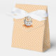 Cute orange tent favour box with white polka dots. On the front there is an image of a baby bird hatching. You can customize the design adding any text clicking in the customize button. The illustration was made by me, Patricia Alvarez. Coordinated products for baby shower are available in my store.