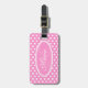 Modern girls bright pink polka dot patterned graphic luggage tag. Perfect for holidays and trips. Add your name and initial to front of tag and customize the reverse of this tag with your name and address details. Designed exclusively by Sarah Trett.