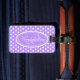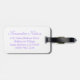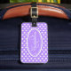 Modern girls bright purple polka dot patterned graphic luggage tag. Perfect for holidays and trips. Add your name and initial to front of tag and customize the reverse of this tag with your name and address details. Designed exclusively by Sarah Trett.