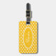 Modern girls bright warm yellow pink polka dot patterned graphic luggage tag. Perfect for holidays and trips. Add your name and initial to front of tag and customize the reverse of this tag with your name and address details. Designed exclusively by Sarah Trett for www.mylittleeden.com on zazzle.