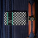 A classic black and white polka dot pattern with a place for your monogram. It includes a teal green stripe for a modern, clean design for any woman.