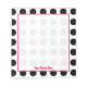 A notepad featuring a background of black polka dots over white. Personalize with your name in pink.