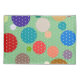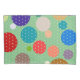 Polka Dot pillow case in mixed colour dots, with a green dotted background.