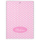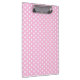 Modern bright pink polka dot pattern clipboard. Customize this clipboard with your name and your family initial on the outside of the clipboard. Currently reads Victoria R. Ideal personalized gift for girls and women studying at school, college or university whom want a distinctive named clipboard to use to make notes. Designed by Sarah Trett.