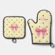 Polka dot pink and bow oven mitt & pot holder set