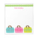 Cute purses are perfect for the fashionista! Add your personalized touch to this notepad. Click "customize" to change the font, image size, etc. Transfer this design onto the products of your choice too! Please visit my designer store, PreppyPrint.com, for coordinating items.