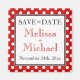 Stylish custom Save the Date magnet for announcing your wedding, designed with white polka dots over red. No minimum order!