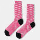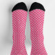 Get into the Halloween spirit with this simple, yet ghoulish pair of socks featuring white skulls scattered across a contrasting bright pink background in a polka dot pattern.