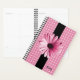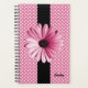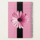 Pretty all purpose daily planner done in a pink and white polka dot pattern. A black band runs down the middle of the front and back and is decorated with graphics of a large pink flower bloom. Customize the custom text to read you want. Perfect for home, office, or back to school.