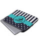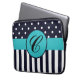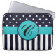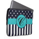 This design features a small polka dot design on top and a striped pattern on the bottom. The laptop sleeve is then accentuated with a turquoise border with a monogram logo in the centre. You can personalize this product with your own initial with the easy-to-use tool.