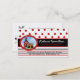 Fun teacher's business card done in black, red, and white, with polka dots and stripes. Graphics of a school bus filled with ladybugs next to a little red school house, decorates the left side of the card. The back has a white background and text for teacher / parent conferences and decorated, with a cute ladybug holding a note. Personalize all the text front and back to suit your needs. Great for teachers and tutors.