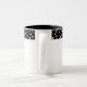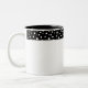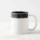 Coffee mug shown in white with a cute black and white polka dots print on the trim.