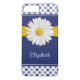 Navy blue, sunny yellow and white polka dots, daisy and ribbon personalized iPhone 6 case Barely There () case. A fun, girly design to help protect your iPhone. Personalize it with your first name.