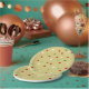These fun party plates have random dots in red, green and white on a tan background. These plates coordinate with the other items in this watercolor seed packet collection.