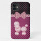 Cute iPhone 5 case done in pink and black, with a two tone polka dot background. Graphics of a pretty light pink and black polka dot ribbon and bow stretches across the middle and a cute light pink poodle decorates the bottom, of the case. Customize to add any text you want. Sweet case that makes a nice gift idea.