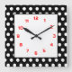 Polka Dots Squared- Black, White & Red Square Wall Clock