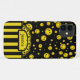 Cool tiny yellow coloured polka dot happy face pattern design on black. Retro stripe flower monogram ribbon, Personalize with your name