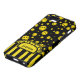 Cool tiny yellow coloured polka dot happy face pattern design on black. Retro stripe flower monogram ribbon, Personalize with your name