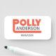 I was looking for re-usable name tags that I could use for the rescue I volunteer for. I was pleased to find this option, with a dry erase front, and a magnet on the back, and ended up ordering 5. Upon arrival, the images and text are clear, and the name tags are a great size for adults. The edges of the name tags are rough from being cut, not smooth as I expected from the image, which is why I didn't score this a 5/5. Very satisfied with how the printing turned out. Logo is clear, colors are crisp.