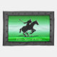 Sports series: A great design if you love polo! Polo is the Sport of Kings and this kitchen / tea towel makes a perfect gift for player / clubhouse! It features an embossed-look black galloping polo pony with rider about to strike the ball with the mallet. On a brushed metal-effect green stripe, it's got a steel-effect, riveted frame. Change the text to what you want or blank out.
