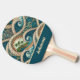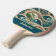 These ping pong paddles will remind you of the beach, surf, and sand, whether you're playing in a coastal cabin among summer breezes or in a basement in snow country. Swirls of Polynesian waves reveal tropical blue and geen jewel tones of the South Pacific and palm trees in a vintage style, remniscent of beach-inspired ethnic art or tattoos. Your name appears in sandy tan on a ocean color teal background, so make sure to type your name in the Personalize section.