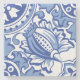 Pomegranate Bloom showcases a richly detailed fruit motif surrounded by flourishing foliage and baroque scrollwork. This design blends traditional Ottoman or Persian tile artistry with a contemporary two-tone palette of vivid and soft blues. The dynamic pomegranate form, symbolizing abundance and life, becomes the centerpiece of a tile that's both decorative and meaningful.