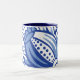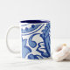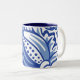 Pomegranate Bloom showcases a richly detailed fruit motif surrounded by flourishing foliage and baroque scrollwork. This design blends traditional Ottoman or Persian tile artistry with a contemporary two-tone palette of vivid and soft blues. The dynamic pomegranate form, symbolizing abundance and life, becomes the centerpiece of a tile that's both decorative and meaningful.