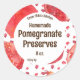 A canning jar label sticker featuring bright red pomegranates illustrated with watercolor that you can customize with your product details and personal message along with the date the product was made.