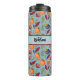 This pomegranate, orange, and fern thermal tumbler features a repeating pattern, similar to British 1800 vintage textiles. The retro colours include orange, plum purple, and green ferns on a dusty blue background. This tumbler is intended to be personalized with your name or other desired text. Make sure to type the text you want in the Personalize section.