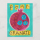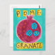 This fun and colourful pomegranate features cute orange dot accents, blue fun flowers and yellow handdrawn text.
