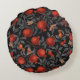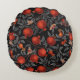 Pomegranates and Bella Moths in red and grey Round Pillow